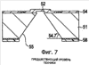 На фиг.7 представлен схематический вид в разрезе, показывающий пример впускного канала для подачи чернил, сформированного путем применения известного жертвенного слоя и процесса анизотропного травления. На фиг.7 показаны кремниевая подложка 51, часть 52, в которой присутствует жертвенный слой, слой 54 остановки травления, маска 58 для травления и плоскости 55 с индексом <111> кремниевой подложки. Как показано на фиг.7, плоскости 55 с индексом <111> имеют наклон 54,7° относительно задней поверхности кремниевой подложки 51. Таким образом, когда сквозное отверстие формируется в кремниевой подложке 51, имеющей толщину Т, используя, например, известный процесс анизотропного травления кремния, поверхность, подвергаемая травлению, должна иметь ширину по меньшей мере (2Т/tg54,7°), по законам геометрии. Это является помехой для уменьшения размера чипов или при выполнении финишных операций с чипами, например монтаж на подложку.