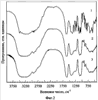 – смещению центра тяжести полосы поглощения 3000-3600 см-1 в область больших волновых чисел на величину не более 200 см-1, наличию полос поглощения с частотами 3308±20, 2933±10, 1602±10, 1420±10 с плечом 1260±40, 1085±10, 1044±10, 877±10, 682±10, 577±10 см-1 и дополнительной полосы поглощения с частотой 947±10 см-1 в ИК-спектре (KBr);