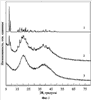 – одновременному наличию диффузного гало и структурных кристаллических рефлексов в спектре порошковой дифракции рентгеновских лучей;