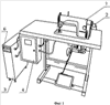 Вспомогательный модульный блок 4 состоит из установленного на нижней поверхности стола швейной машины металлического корпуса, в котором на специальных DIN-рейках установлены компрессор 13, связанный с электромагнитным клапаном 14 и последовательно соединенными при помощи ПВХ-трубки и цанговых быстросъемных фитингов элементами вакуумной линии 15: регулятором расхода воздуха 16, вакуумным регулятором 17, фильтром-влагоуловителем 18, механическим вакуумметром 19 и емкостями 20 и 21 нагнетающей и всасывающей пневматических линий соответственно. Кроме того, блок 4 содержит электрические и пневматические коммутационные линии.