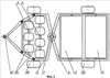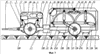 Вторая ступень комбинированного агрегата состоит из рабочих органов в виде двух барабанов – первого 8 и второго 9 с подвижными шпорами 10 круглой формы, установленными на раме 2 второй ступени. Кроме того, на раме 2 установлен теплогенератор 11 с форсункой 12, запитанный из топливного бака 13. Электростанция 14 с топливным баком 15 и гидронасосная установка 16 с гидробаком 17, установленным на раме 1 первой ступени.