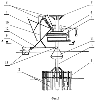 Несущий блок 3 снабжен конусным поясом 11 для взаимодействия с ледовым покровом.