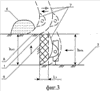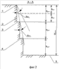 В зависимости от глубины основания один или несколько слоев образуют ступень со стенкой 2 и дном 3, высота ступени по глубине (hycт) должна соответствовать высоте подъема отвала 3 (hycт~0,9hотв.). Каждый слой (hcл) разрабатывается бульдозером и разрыхленный грунт удаляется за пределы основания, зачистка стенок уступов 2 производится поперечными челночными ходами по периметру основания, по схеме, представленной на фиг.1. При рабочем ходе происходит горизонтальное заглубление отвала 7 в стенку 2 на глубину зачистки L3, затем вертикальным усилием отвал 7 поднимается до бровки ступени, разрушая грунт 9 на «отрыв», вырезая его из стенки и заполняя отвал 7, при обратном ходе грунт 6 с отвала 7 отсыпается на поверхность движения – фиг.3. Дальнейшая разработка – по описанной схеме слои – ступени, после достижения заданной глубины проводится формирование и зачистка дна 5 и других поверхностей. При нескольких ступенях их угловое расположение в вертикальной плоскости ( уст) не превышает угла естественного откоса грунта ( пр) (фиг.2). При зачистке стенки верхней ступени отвал 7 с грунтом достигнув бровки котлована 1 продвигается дальше по поверхности 8 (фиг.3), на которой и разгружает грунт 6 с отвала при обратном ходе бульдозера. В результате образуется продольный валик разрыхленного прочного грунта вдоль бровки котлована для эстакадной погрузки его в транспортные средства.