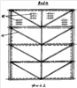 1. Блок колонн здания, содержащий колонны продольного и поперечного ряда, распорки между рядами колонн, выполненные в виде полов, потолков и продольных стен смежных помещений, а также раскосы с арматурными решетками и арматурными связям, отличающийся тем, что раскосы выполнены в виде перегородок смежных помещений, установленных между колоннами продольного и поперечного ряда под наклоном 10-50° к колоннам поперечного ряда, а арматурные решетки перегородок связывают колонны продольных и поперечных рядов с полами и потолками.