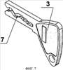 Сами задержки 5 выполнены плоскими и в плане имеют крестообразную форму. Задержки могут быть расположены по обе стороны от канала для ключа. При этом ключ 3 имеет два волнообразных паза 7, расположенных симметрично относительно его плоскости.