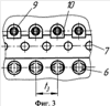 Относительное размещение вооружения шарошки с однорядным периферийным венцом показано на фиг.3, представляющей собой развертку соответствующей части шарошки. Зубки 6 периферийного венца установлены с угловым шагом t3 в соответствии с типоразмером долота. Зубки 7 и 9 калибрующих рядов установлены в шахматном порядке относительно друг друга.