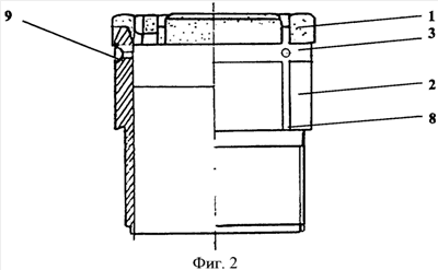 Алмазная буровая коронка для бурения с продувкой воздухом показана на фиг.2 и 3, где фиг.2 и фиг.3 – вертикальная и горизонтальная проекции коронки.
