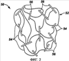 Еще один вариант осуществления полимерного материала 50 с нанонаполнителем представлен на фиг.3. В этом варианте полимерный материал 52 имеет полимерные цепи 54, связанные нановолокнами 58, содержащими наночастицы или наноглину. Наночастицы могут быть изготовлены, например, из металлов, графита, углерода, алмаза, керамики, окислов металлов, других окислов и полимерных материалов. Наноглина может быть изготовлена, например, из монтмориллонита, бетонита, гекторита, аттапульгита, каолина, слюды и иллита. Некоторые типы наноглины могут быть использованы, например, в тех случаях, которые выгодны с точки зрения улучшения специальных свойств материала, например повышения прочности материала 50 на разрыв.