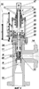 На кольцевом опорном выступе 43, выполненном на хвостовике 25 штока 24, установлен упорный подшипник 44, закрепленный на хвостовике 25 штока 24 посредством гайки 45, законтренной шплинтом 46. Кольцевой опорный выступ 43 может быть выполнен съемным или за одно целое с хвостовиком 25. Упорный подшипник 44 установлен для взаимодействия с упорной частью 42 преобразователя 37, выполненной на внешнем торце стержня 39. Комбинированный приводной механизм дополнительно снабжен защитным колпаком 47 стаканного типа для предотвращения механических повреждений хвостовика 25 штока 24. Кроме того, корпус 11 регулирующего клапана оснащен устройством 48 сброса избыточного давления.