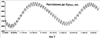 Движется Луна под воздействием тяготения, в основном, двух небесных тел – Земли и Солнца, при этом солнечное притяжение вдвое больше земного. Луна находится на среднем расстоянии в 384400 км. На фиг.2 представлено расстояние от Земли до Луны в период времени с 1 ноября по 19 декабря 2006 г. В апогее это расстояние увеличивается до 405500 км, а в перигее уменьшается до 363300 км. Полный оборот вокруг земли Луна совершает за 29,5 суток, если за начало отсчета принимать Солнце. За этот период, называемый синодическим месяцем, она проходит все фазы от новолуния к первой четверти, полнолунию, последней четверти и снова возвращается к фазе новолуния.