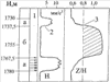 На графике 3 осадочная толща выделяется мощной аномалией параметра Z/H, указывающего на преобладание амплитуд сигналов с первого (вертикального) датчика над сигналами с горизонтальных датчиков.