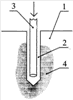 Сущность технического решения поясняется примером его реализации и чертежом, на котором схематично показан пример реализации способа разупрочнения пористой среды из одной скважины.