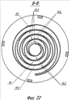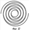 Фиг.8, фиг.9, фиг.11, фиг.12 – отклонение из диаметрально противоположного положения сферических спиральных стенок фиг.7 в четыре разные стороны. Эти фигуры в комплексе характеризуют проскальзывающее качение плоских спиральных стенок.