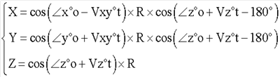 cos( Z°o+Vz°t-180°) – проекция радиуса на плоскость XY;