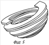Фиг.3, фиг.4, фиг.5, фиг.6 – отклонение из диаметрально противоположного положения сферических спиральных стенок фиг.2 в четыре разные стороны. Эти фигуры в комплексе характеризуют проскальзывающее качение сферических спиральных стенок.