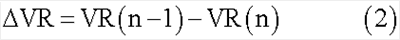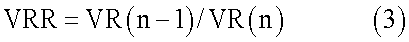 Следует отметить, что хотя в этом варианте осуществления изобретения в ходе этого этапа вычисляется величина изменения VR отношения частоты вращения, вместо этого может вычисляться темп изменения VRR отношения частоты вращения. Скорость изменения VRR отношения частоты вращения представляет собой отношение между отношением VR(n) частоты вращения и отношением VR(n-1) частоты вращения, которое вычислено непосредственно перед этим и получено следующим уравнением (3).