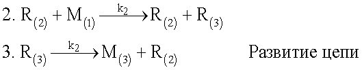 В качестве иллюстрации механизма радикально-цепного процесса представлен крекинг молекулы M(1) в виде последовательных радикальных реакций