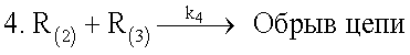 Обрыв цепи процесса происходит реакциями рекомбинации и диспропорционирования радикалов.