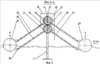 При опускании понтона с уходом волны нижний (шестой) рычаг 21 вводит в сцепление шестую обгонную муфту 17 и приводит во вращение нижний вал 5 по часовой стрелке. Из-за сцепления между шестернями 10, 11 верхний вал 4, который стал ведомым, продолжает свое вращение против часовой стрелки.