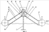Для изменения ориентации шарнирно закрепленных рычагов 21, 30 и т.д., находящихся правее стоек 1, используются рамы ориентации 29. Рама ориентации представляет собой вертикальную, удлиненную прямоугольную металлическую раму, которая с двух сторон охватывает с небольшим зазором каждую пару рычагов 21, 30, находящихся с правой стороны (см. фиг.2). С помощью кронштейна 35 прямоугольная рама 29 крепится неподвижно к верхнему левому рычагу 31 противоположной пары. При этом изменение ориентации рычага 31 приводит к изменению ориентации противоположных (правых) рычагов 21, 30. Таким образом вдоль направления волны устанавливаются как левые, так и правые рычаги, что обеспечивает максимальный отбор энергии волн.