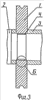 Согласно второму варианту (фиг.3) узел крепления упорного гребня 1 масляных подшипников на валу 2 также состоит из средства, предотвращающего смещение гребня вдоль оси вала 2, выполненного в виде цилиндрической втулки 3, установленной на вал 2, и средства, предотвращающего проворачивание гребня 1 вокруг вала 2, выполненного в виде ленты 4 с продольным рифлением из пружинной стали, предпочтительно формы в поперечном сечении, т.е. имеет в поперечном сечении профиль с углублением в средней части. Лента 4 размещена между упорным гребнем 1 и валом 2 в кольцевом пазу 6 вала 2 (фиг.4).