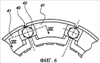 В варианте осуществления, изображенном на фиг.1-4, головки 31 болтов 26 прилегают в осевом направлении к наружной торцевой поверхности сегментов прижимного кольца, изображенного на левой стороне фиг.2. В прижимном кольце 8, изображенном на правой стороне фиг.2, гайки 27 прилегают в осевом направлении к наружной торцевой поверхности сегментов 10 прижимного кольца 8 через шайбу 33.