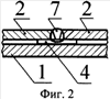 На фиг.2 показан чертеж, иллюстрирующий узел стыковки торцов муфт, где: 1 – трубопровод, 2 – разрезные муфты, 4 – тонкостенное технологическое кольцо, 7 – сварной шов, 12 – слой, образованный самотвердеющей массой.