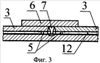 На фиг.3 показан чертеж, иллюстрирующий узел крепления оболочки к трубопроводу на промежуточном участке, где: 1 – трубопровод, 3 – разрезные муфты, привариваемые к трубопроводу, 5 – пара тонкостенных технологических колец, 6 – бандажное кольцо, 7 – сварной шов, 12 – слой, образованный самотвердеющей массой.