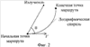 Известен способ формирования маршрута носителя пеленгатора, определяющего местоположение излучателя методом триангуляции (патент RU 2303794, G01S 5/02, 27.07.2007, БИ 21) взятый в качестве прототипа. Сущность прототипа заключается в том, что в начальной точке маршрута, на носителе пеленгатором измеряют пеленг неподвижного излучателя относительно носителя пеленгатора, затем при перемещении носителя пеленгатора из начальной точки по прямой под углом 35°16′ относительно направления на излучатель непрерывно измеряют пеленгатором пеленг излучателя, при этом пройденное носителем расстояние измеряют автономной навигационной системой носителя, в момент, когда угол между направлением движения носителя пеленгатора и направлением на излучатель станет равным 180°-35°16’=144°44′, производят вычисление местоположения излучателя триангуляционном методом, при этом отрезок между начальной точкой движения носителя и точкой, когда направление на излучатель равно 144°44′, является формируемым маршрутом носителя пеленгатора (фиг.1).