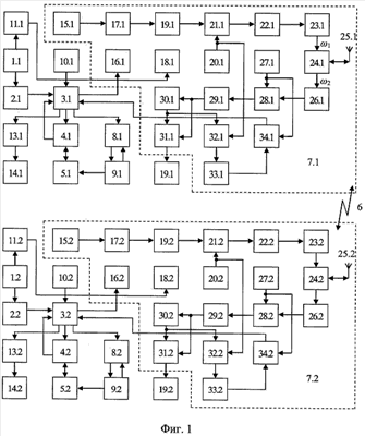 которое поступает на вход амплитудного ограничителя 30.1 и на первый (информационный) вход синхронного детектора 31.1. На выходе амплитудного ограничителя 30.1 образуется напряжение