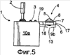 на Фиг.4 – схематически разрез приспособления, в котором собирающая воронка, расположенная под трекболом, содержит трубчатую секцию, проходящую до соединительной части в корпусе;