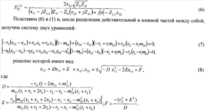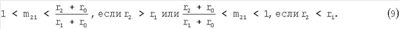 Полученные две взаимосвязи (8) означают, что количество неуправляемых элементов должно быть не менее двух. Значения параметров этих элементов, оптимальных по критерию обеспечения требуемых значений m21, 21, должны удовлетворять системе двух уравнений, формируемых на основе (8). Для этого необходимо взять пробную схему СФУ, найти матрицу сопротивлений этой схемы и представить ее в виде (2). Найденные таким образом элементы х11, х22, x21, выраженные через параметры схемы, нужно подставить в (8) и решить сформированную систему двух уравнений относительно выбранных двух параметров. Значения остальных параметров могут быть выбраны произвольно или исходя из каких-либо других физических соображений. Эти параметры могут также относиться к управляемой части, то есть участвовать в формировании Z1, Z2 (входить в коэффициенты D, Е, F). Условие физической реализуемости определяется необходимостью обеспечения положительного знака подкоренного выражения в (8). Из этого условия следуют ограничения на m21: