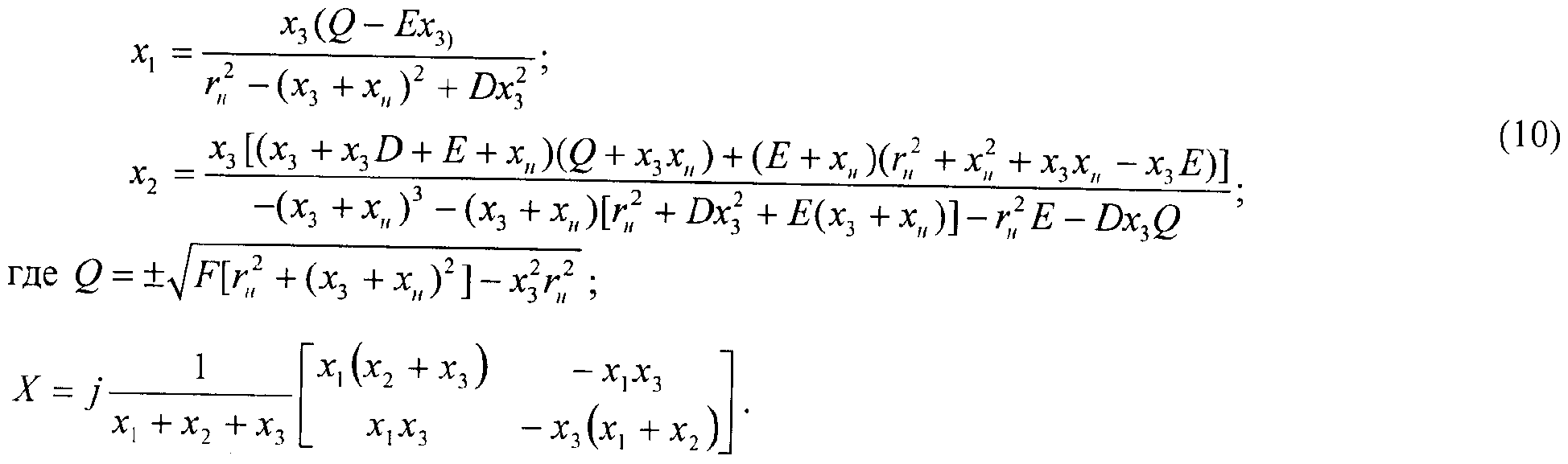 Если хn<0, то это емкость . Подкоренное выражение в (8) всегда положительно. Значение сопротивления х3 выбирается произвольно или исходя из каких-либо физических соображений, например из условия получения таких значений сопротивлений х1, х2, определяемых по формулам (10), которые бы реализовывали значения индуктивностей и емкостей, близких к номинальным значениям, выпускаемым промышленностью.
