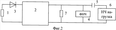 Устройство-прототип содержит источник 1 амплитудно-модулированных сигналов, четырехполюсник 2, нелинейный элемент 3, фильтр нижних частот 4 на элементах R, С, разделительная емкость 5 на элементе Ср и низкочастотную нагрузку 6 на элементах Rн, Cн.