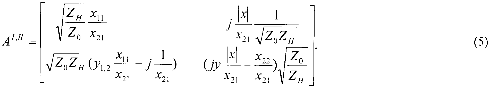 В двух крайних состояниях входного сигнала нелинейный элемент принимает два значения комплексной проводимости y1,2=g1,2+jb1,2. Пусть, кроме того, комплексные сопротивления высокочастотной нагрузки zн=rн+jxн, источника сигнала z0=r0+jxo0 на несущей частоте известны. Известны также проводимости двухполюсного нелинейного элемента y1,2=g1,2+jb1,2 в указанных двух состояниях, то есть известны его классические матрицы передачи.