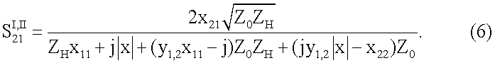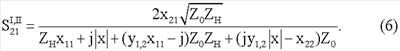 Используя известные взаимосвязи между элементами матриц передачи и рассеяния [Фельдштейн А.Л., Явич Л.Р. Синтез четырехполюсников и восьмиполюсников на СВЧ. М.: Связь, 1971, с 39], получим выражения для коэффициентов передачи: