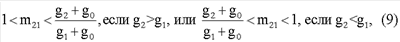 , при m21>1 или , при m21<1; m, mвх, m21 – отношения модулей коэффициента передачи высокочастотной части демодулятора, входного сигнала и сигнала на высокочастотной нагрузке в двух состояниях входного сигнала, характеризуемых двумя крайними значениями амплитуды амплитудно-модулированного сигнала; М21 – глубина амплитудной модуляции амплитудно-модулированного сигнала на высокочастотной нагрузке; y1,2=g1,2+jb1,2 – заданные значения проводимостей управляемого двухполюсного элемента в двух состояниях (1 и 2), определяемых двумя крайними уровнями входного амплитудно-модулированного сигнала; zн=rн+jxн, z0=r0+jx0 – заданные комплексные сопротивления нагрузки и источника сигнала.