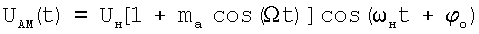 Рассмотрим амплитудно-модулированные колебания в двух состояниях, характеризуемых крайними значениями диапазона изменения амплитуды.