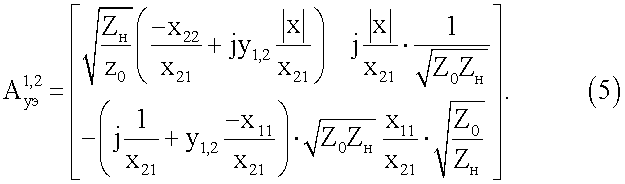 Умножим матрицы (3) и (4). С учетом Z0, Zн найдем нормированную матрицу передачи всего устройства: