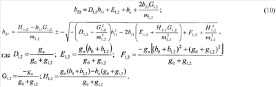 В данной работе используются коэффициенты , , . Это означает, что количество неуправляемых элементов в четырехполюснике должно быть не менее трех. Значения параметров этих элементов, оптимальных по критерию обеспечения требуемых значений m2 должны удовлетворять системе трех уравнений, формируемых на основе (12). Для этого необходимо взять пробную схему четырехполюсника, найти матрицу передачи этой схемы и представить ее в следующем виде: