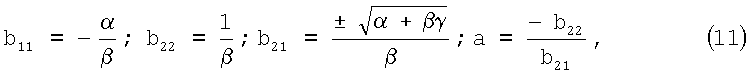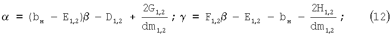 ; ; ; a, b, c, d – элементы классической матрицы передачи четырехполюсника; g0, b0 – заданные значения действительной и мнимой составляющих проводимости источника сигнала; gн,bн – заданные значения действительной и мнимой составляющей проводимости нагрузки; g1,2, b1,2 – заданные значения действительной и мнимой составляющих проводимости двухэлектродного управляемого элемента в двух состояниях, определяемых двумя уровнями амплитуды входного амплитудно-модулированного сигнала.