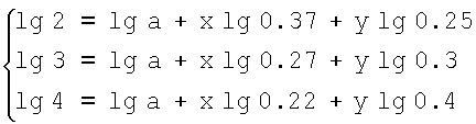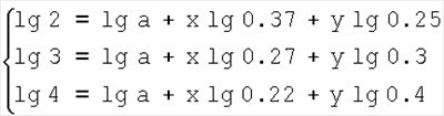 Прологарифмируем систему уравнений из трех неизвестных a, x, y:
