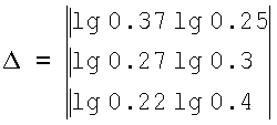 Система из трех уравнений с тремя неизвестными имеет однозначное решение. Решение системы проведено по методу Сарриуса-Крамера. Запишем матрицы определителя системы и матрицы алгебраических дополнений неизвестных.