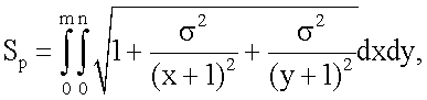 На фиг.3 представлена зависимость полноты древостоя (П) от соотношения площади рельефа древесного полога (Sp) к геометрической площади анализируемого лесного участка (S). Площадь рельефа (Sp) двумерной функции сигнала изображения А(x, y) вычисляют программным методом из соотношения [см., например, Патент RU 2294622, 2007 г. «Способ определения полноты древостоя». Патент RU 2255357, 2005 г. «Способ определения площади рельефа»]: