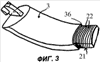 На фиг.3 изображен в перспективной проекции концевой элемент 3 по фиг.1 или 2 в отсоединенном виде. Концевой элемент 3 имеет на стороне, соединяемой со средним элементом, штекер 21, который отделен от остальной части концевого элемента 3 по периметру выступом 36 и, таким образом, имеет меньшую поверхность поперечного сечения, чем остальная часть концевого элемента 3. Этот штекер 21 имеет такую же площадь поперечного сечения, как внутренняя полость 35 среднего элемента 2 по фиг.1 или 2 (более выпуклая верхняя сторона, менее выпуклая нижняя сторона, две соединительные узкие стороны), так что в смонтированном виде, показанном на фиг.1 и 2, средний элемент 2 полностью закрывает по периметру выступ 36, и элементы 2, 3 соприкасаются между собой, не образуя ступеньки в поперечном сечении. Благодаря конгруэнтности штекера 21 и полости 35 штекер 21 может быть запрессован в служащую гнездом для него полость 35 среднего элемента 2, вследствие чего образуется соединение с силовым замыканием. Кроме того, вставляемая часть 21 имеет насечку 22, которая усиливает силовое замыкание.