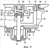Между этими двумя котлообразными конструкциями расположена пружина 87, служащая в качестве распорки между ними. Следовательно, плунжер 84 предварительно напряжен вниз пружиной 87. Однако это напряжение зависит от положения верхней котлообразной конструкции 71. Конструкция направляется штифтами или кольцом, выступающим из верхней поверхности ручки 8. В то время как пружина 87 создает предварительное напряжение, направленное вверх в верхней котлообразной конструкции 71, торцы 75 балансировочного элемента 70 (см. Фиг.11) давят вниз на выступы 72 верхней котлообразной конструкции 71.
