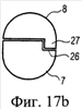 Часть 7 ручки, показанная на Фиг.2, снова показана на Фиг.17а. Здесь паз 26 на стороне, обращенной к на части 8 ручки, показан в увеличенном виде вдоль края. На Фиг.17b части 7 и 8 ручки в области паза 26 показаны в разрезе. Выступ 27 точно входит в паз 26. С помощью паза 26 и выступа 27 часть 8 ручки может быть повернута вправо относительно части 7 ручки, показанной на Фиг.2 или 17. При повороте влево выступ 27 упирается во внутреннюю поверхность паза 26, что делает дальнейший поворот невозможным. Таким образом, крышку 3 легко позиционировать и надеть на кастрюлю 2. Необходимые для этого средства неподвижны по отношению к крышке и кастрюле.