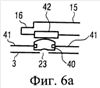 Опора для сужения 16 стержня 15 показана на Фиг.16а. Пластинчатая пружина 133 расположена на кронштейне шарнира 130. Сужение 16 имеет несколько плоских областей 134. Вместо трех плоских областей 134, расположенных по окружности, может иметься только одна, две или больше чем три плоских области. Положения защелкивания стержня 15 задаются или усиливаются путем взаимодействия плоских областей 134 с пластинчатой пружиной 133. Пластинчатая пружина 133 удерживается на кронштейне шарнира 130. Она крепится по обе стороны стержня 15 между, в каждом случае, двумя выступами 131 и 132. При использовании этой конструкции даже относительно тонкая пластинчатая пружина крепится точно, несмотря на то что кронштейн шарнира 130 может иметь некоторые неточности изготовления.