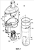 фиг.2 – перспективный вид с пространственным разделением элементов, иллюстрирующий циклонное пылесборное устройство типа рукоятки с фиг.1;