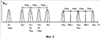На фиг.4 приведены диаграммы, иллюстрирующие первый режим работы, на фиг.5 – второй режим. По оси абсцисс на всех диаграммах отложено время. На диаграммах А условно показаны командные кодовые посылки, передаваемые по командной линии связи от центрального пульта управления в аппаратуру каждого пациента.